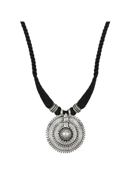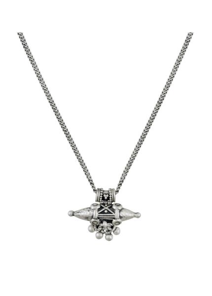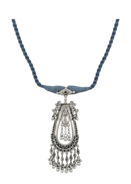 For a bold and beautiful style statement, get hold of this silver tribal necklace with rawa, ghungroo and filigree work.