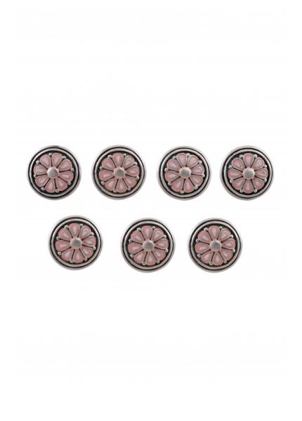 The Chandrika collection beautifully intertwines contemporary fashion with the resonance of signature Amrapali craftsmanship and tradition. These silver plated alloy kurta buttons are adorned with rawa details and enameling in shades of blue that represent the blue city - Jodhpur