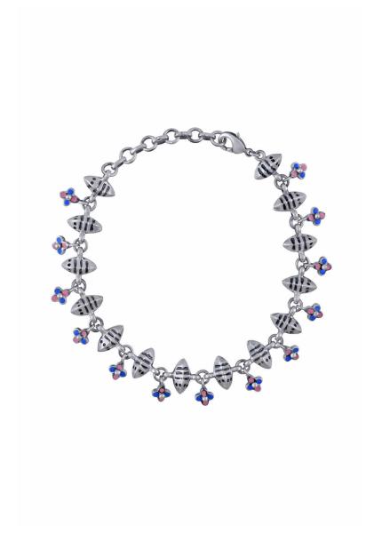 Composition: Alloy with oxidised silver plating and enamel. Fastening: Lobster clasp. All our jewellery is handcrafted and therefore variations will occur.