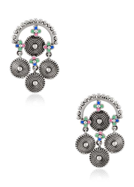 Composition: Base Metal with E-coated Silver Oxidised Plating and Enamel. Fastening: Hook All our jewellery is handcrafted and therefore variations will occur.