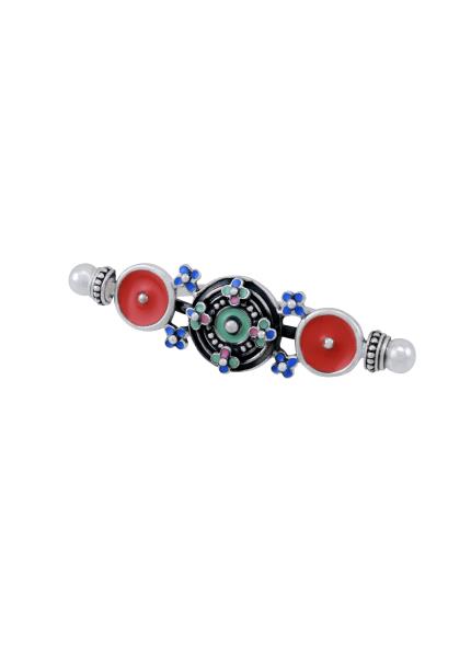 Composition: Base Metal with E-coated Silver Oxidised Plating and Enamel. Fastening: Hook All our jewellery is handcrafted and therefore variations will occur.