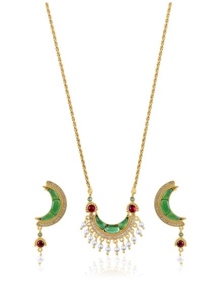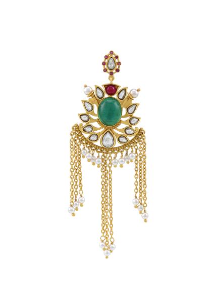 Replete with timeless Indian motifs, our latest traditional jewellery collection has a dainty feminine charm and a not-to-be-missed vintage vibe. This brooch make for a subtle style statement on weddings and festive occasions.