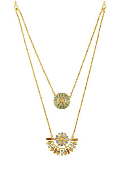Beautifully blending the allure of antique gold plating, intricate enamel craftsmanship, and the shimmer of crystals and pearls, each piece unveils a mesmerizing fusion of geometric precision and floral elegance, celebrating the harmony of tradition and modernity.