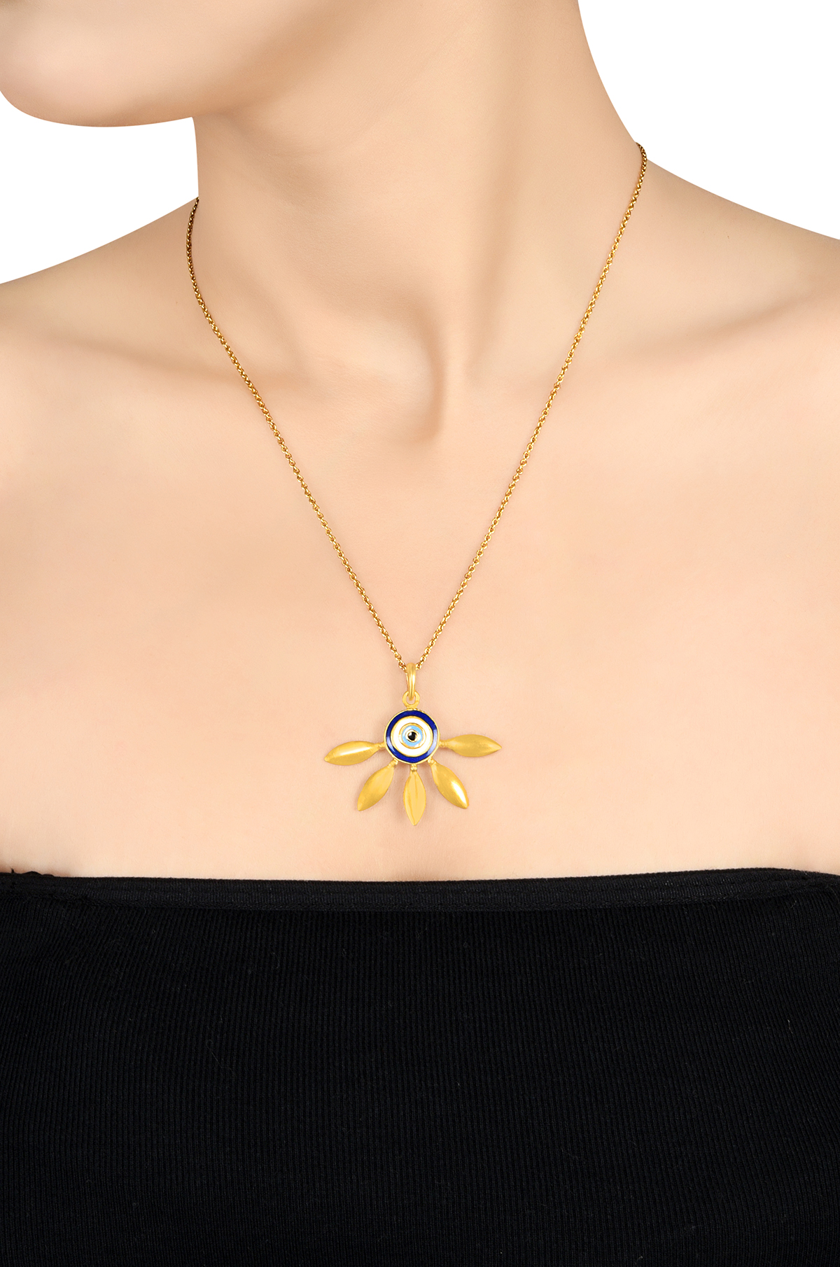 Home > Gold Plated Evil Eye Leafy Pendant With Chain