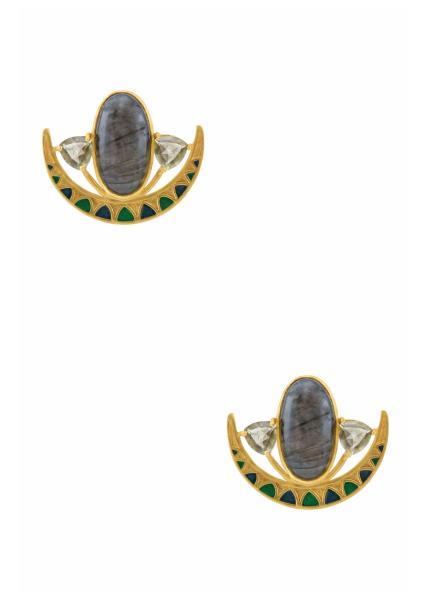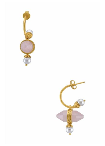 Composition: Gold plated alloy with glass stones and pearl. Fastening: Push back. All our jewellery is handcrafted and therefore variations may occur.