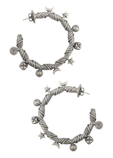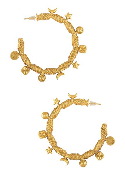 Our latest jewellery collection in collaboration with Masaba Gupta is a blend of two distinct cultures intertwined. Multiple fun motifs like the moon, stars and shells are embossed on this gold plated bucket earrings made in alloy. The earrings are sure to make a statement.