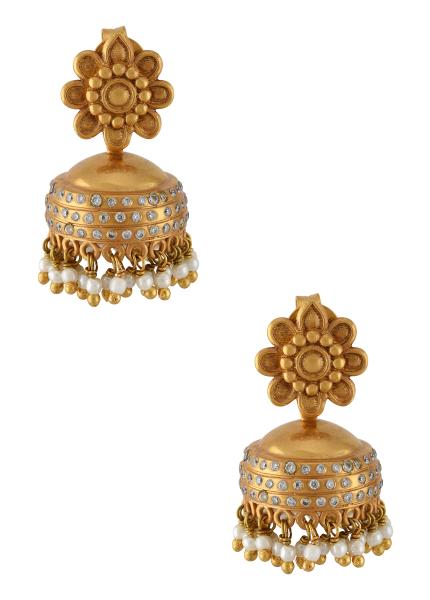 These earrings are adorned with moon motifs and textured jhumki droplet.