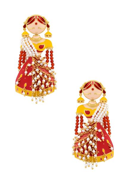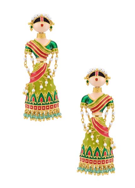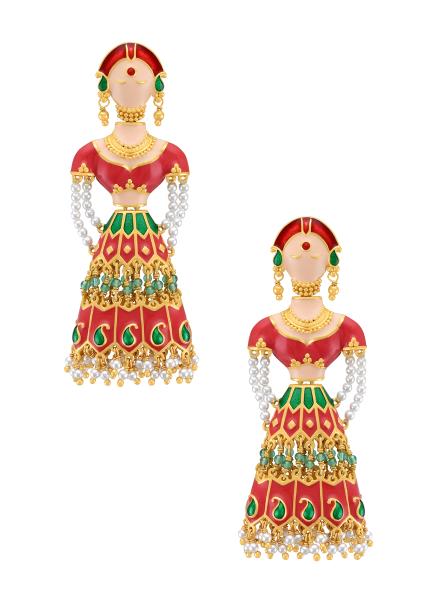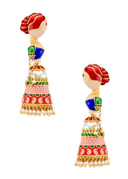 With a fresh take on traditional jhumkas, pair these cute enamel-coated and pearl-embellished figurines with your traditional attire, or go all out and experiment with a statement fusion look!
