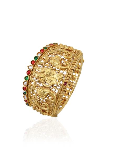 Handcrafted out of oxidised silver, and studded with pearls and glass, this assorted collection features temple-style floral, mythological and god motifs that perfectly complement traditional festive and special occasions.