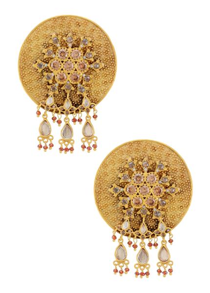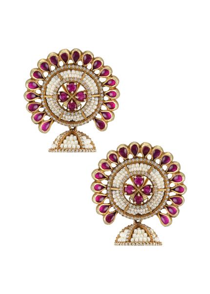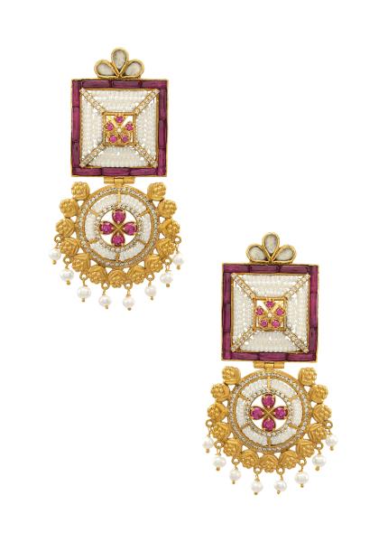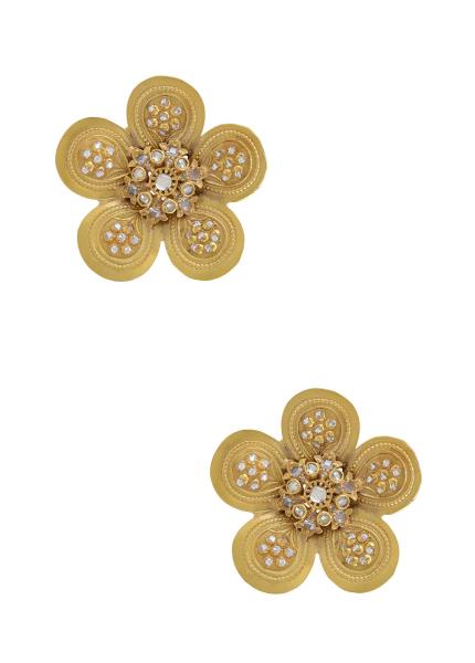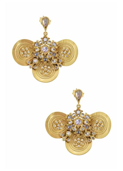 Composition: Gold plated silver with glass stones & pearls. Fastening: Push-back with clip-ons. All our jewellery is handcrafted and therefore variations may occur.