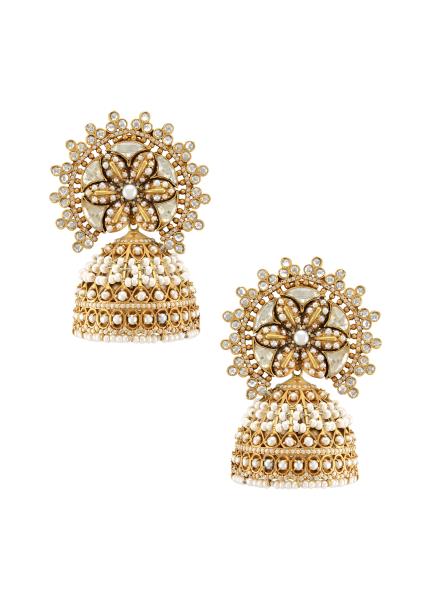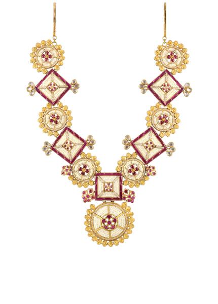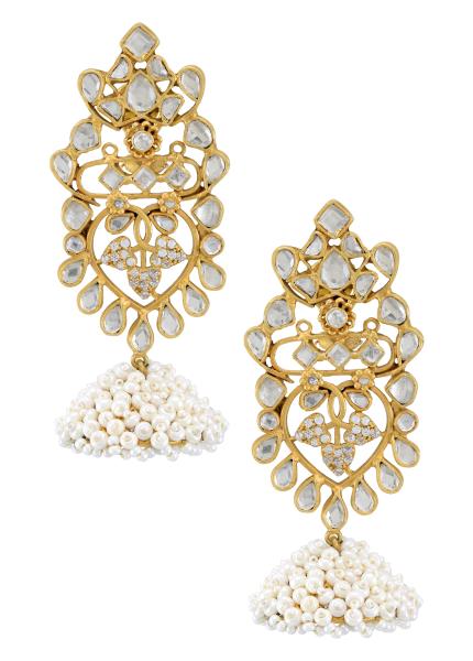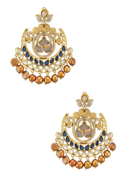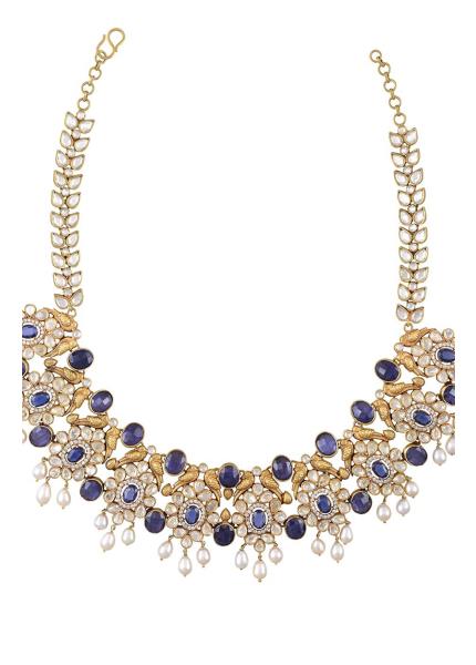 Intricate floral designs in gold-plated silver with strings of pearls and the vintage look of this handcrafted jewellery will surely win your heart.