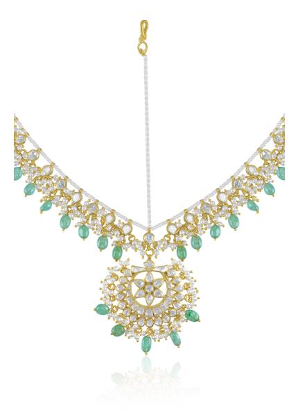 Intricately handcrafted to lure you with its subtle vintage appeal, this Mathapatti lends a stunning style statement to your outfit.