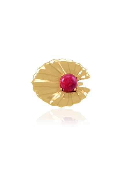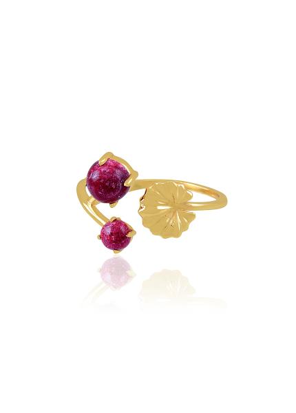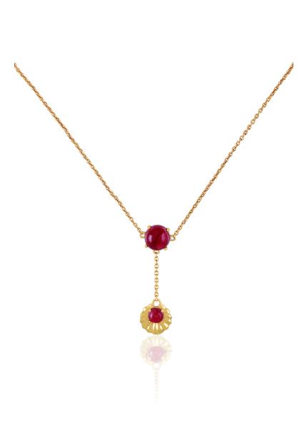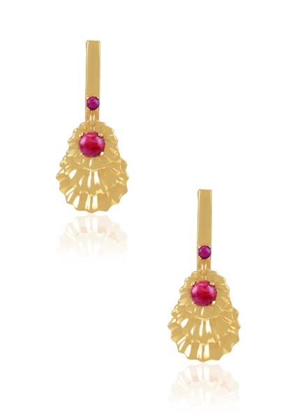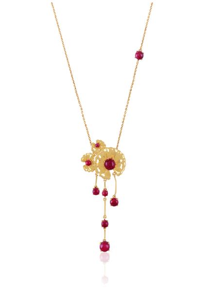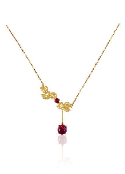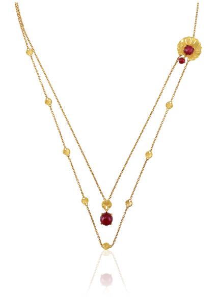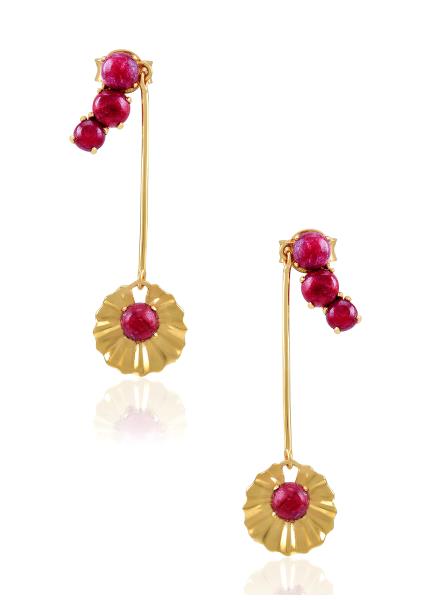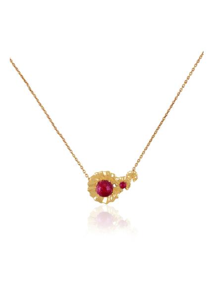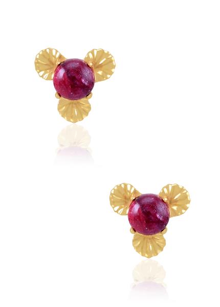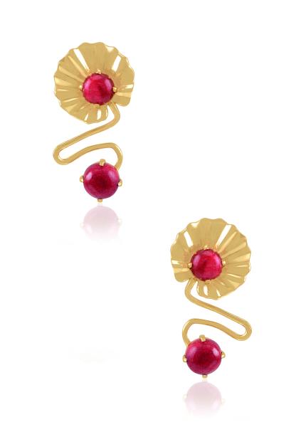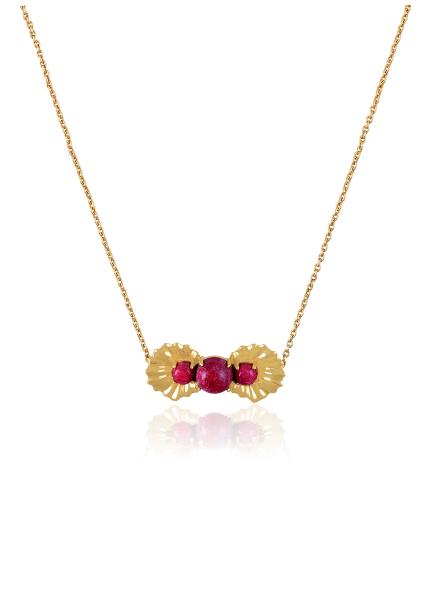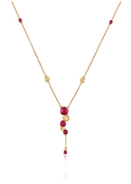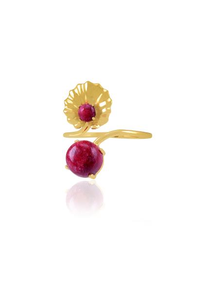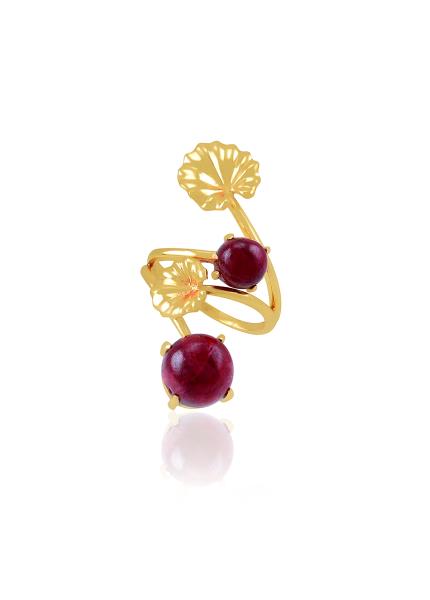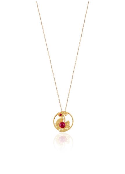 Composition: Gold plated silver with dyed ruby stones. All our jewellery is handcrafted and therefore variations may occur.