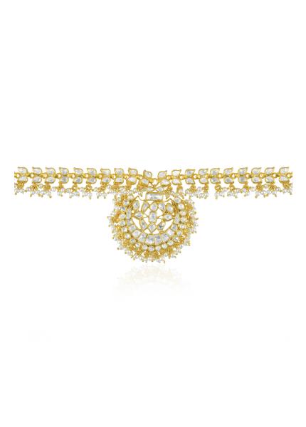 Intricately handcrafted to lure you with its subtle vintage appeal, this Mathapatti lends a stunning style statement to your outfit.