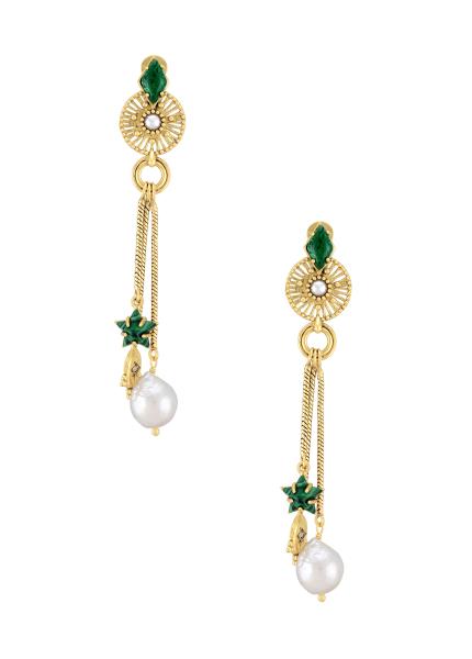 Composition: Gold Plated alloy with malachite & crystals. Fastening: Easy hook. All our jewellery is handcrafted and therefore variations may occur.