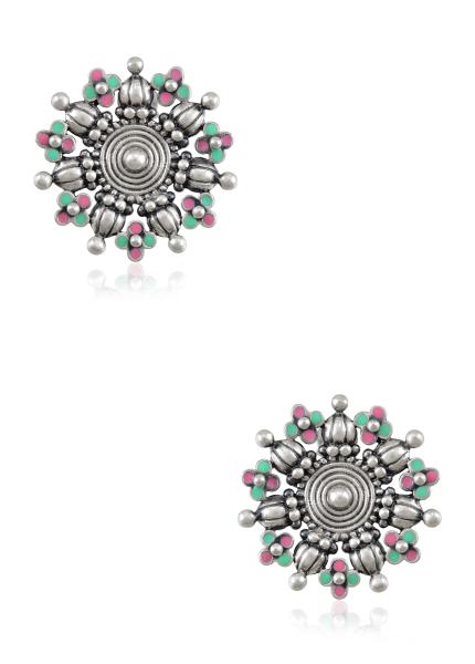 Composition: Base Metal with E-coated Silver Oxidized Plating and Enamel. Fastening:Stud. All our jewellery is handcrafted and therefore variations will occur.