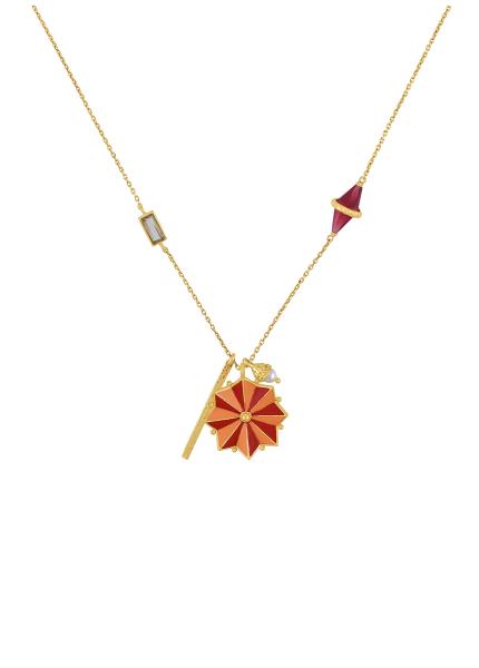 Composition: Gold plated alloy with colorful stones and enamelling. Fastening: Push back. All our jewellery is handcrafted and therefore variations may occur.