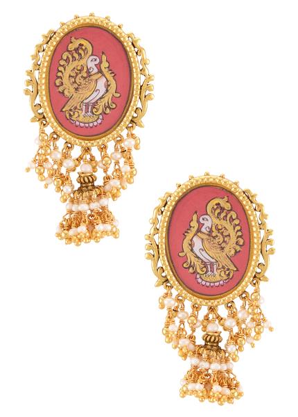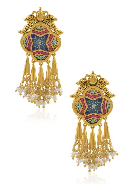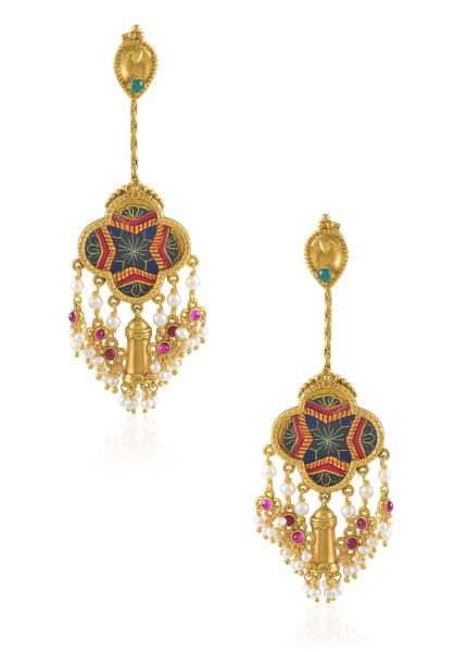 Composition: Gold plated silver,painting with semi precious stones, Fastening: S hook, Disclaimer: The painting is handmade and therefore slight variations may occur in the color and placement of the painting.