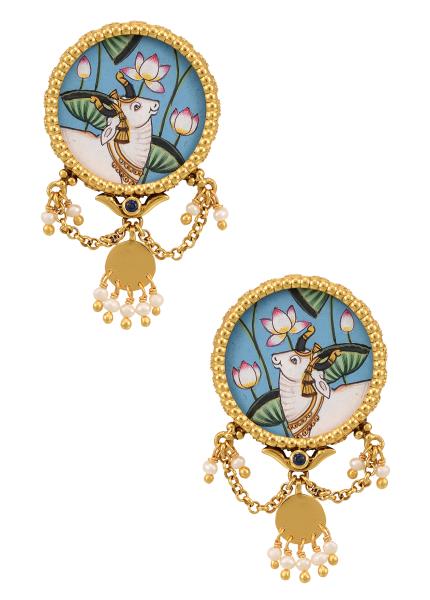 Composition: Gold plated silver,painting with crystals and pearls, Fastening: Adjustable string, Disclaimer: The painting is handmade and therefore slight variations may occur in the color and placement of the painting.