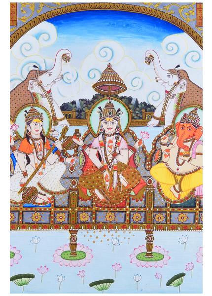This handmade miniature painting features a beautiful composition of Lord Ganesha