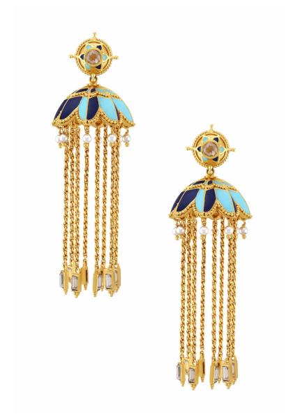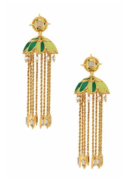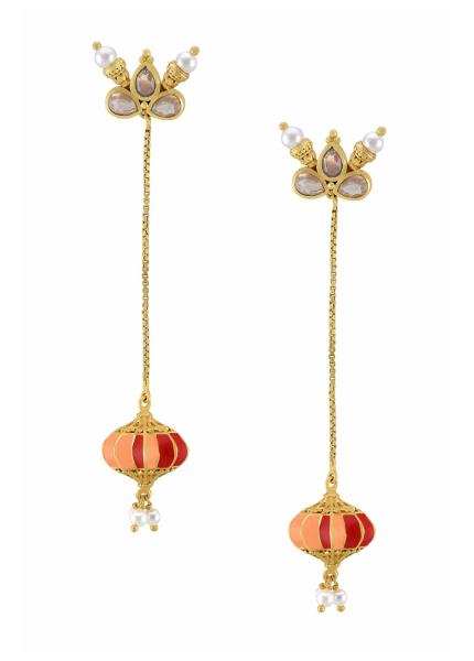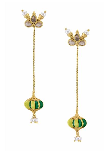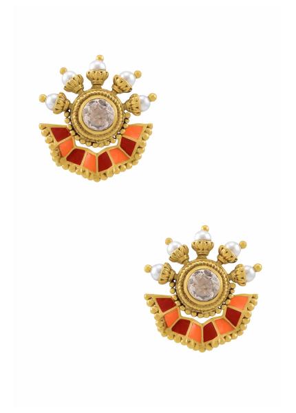 Casual. Chic. Contemporary. These earrings are gold-plated and beautified with stones and colourful enamel detailing. Versatile, multi-purpose and a very handy addition to your jewel box!