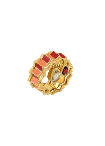 Composition: Gold plated alloy with colorful stones and enamelling. Fastening: Push back. All our jewellery is handcrafted and therefore variations may occur.