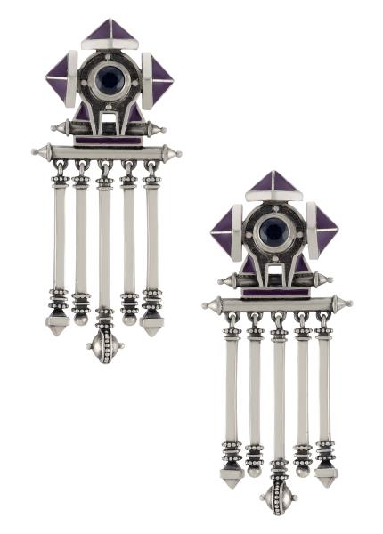 Composition : Gold and black ruthenium plated alloy with enamel and blue zircon.Fastening : Stud All our jewellery is handcrafted and therefore variations may occur.