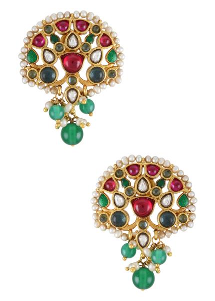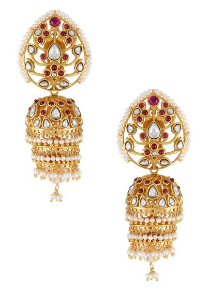 The style is inspired by the vintage charm of the Mughal Era, is perfect for all your wedding and pre-wedding celebrations. Embellished with floral designs and studded with pearls, crystals and coloured glass, you’re surely going to fall in love with the exquisite craftsmanship of each of these gold-plated pieces. A jewel box must-have indeed.