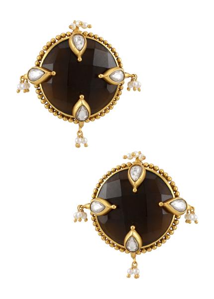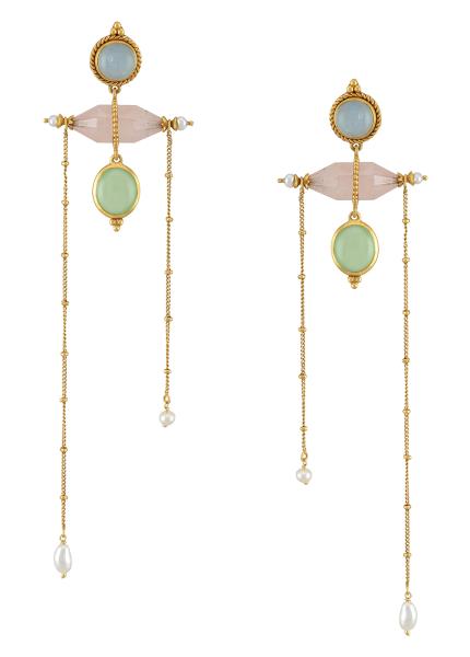 Contemporary yet traditional, These enamelled earrings are versatile to its core. Gold-plated and studded with colourful glass, pearls and crystals, works great with traditional attire as well as with casual and work ensembles. This style is lightweight, easy to carry and affordable - perfect for gifting as well.