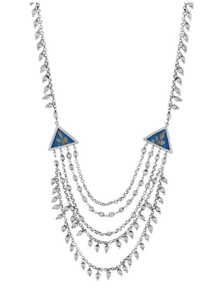 Featuring traditional Banarasi fabric in silver, this statement necklace will get you in the spotlight in all your festive get-togethers and outings.