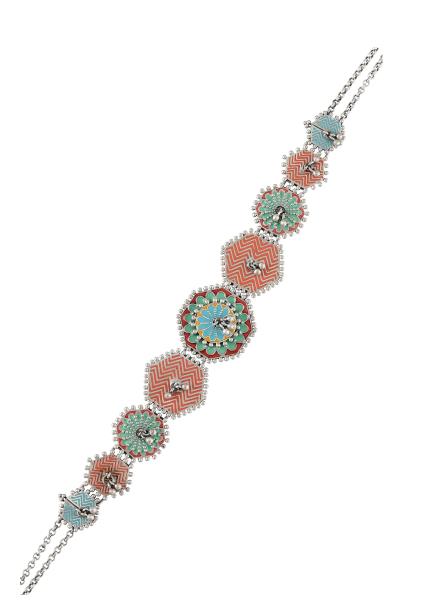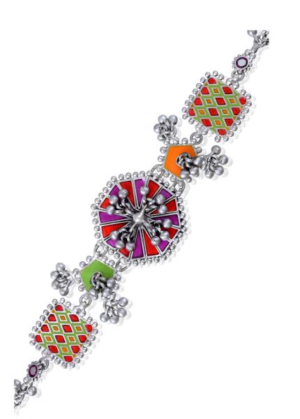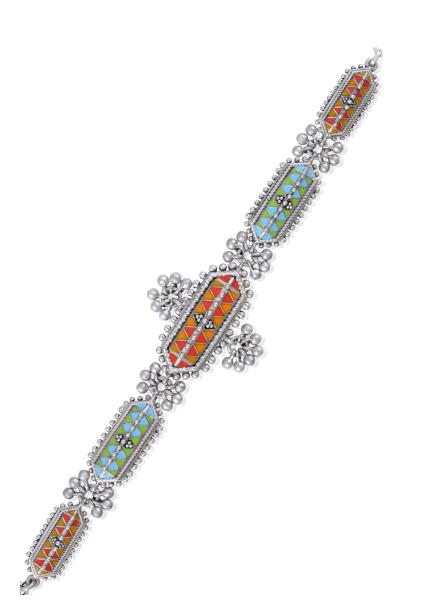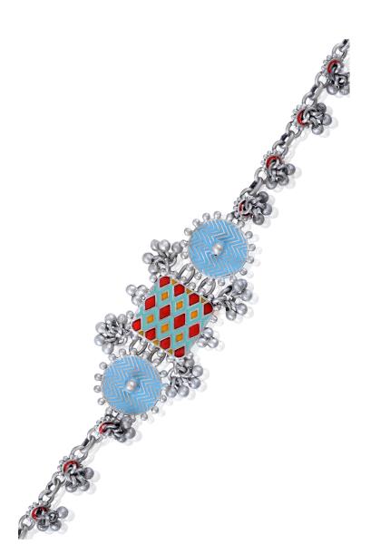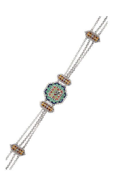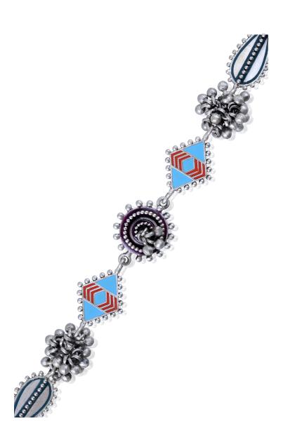 Composition: Oxidized silver with enamel. Fastening: Lobster clasp. All our jewellery is handcrafted and therefore variations may occur.