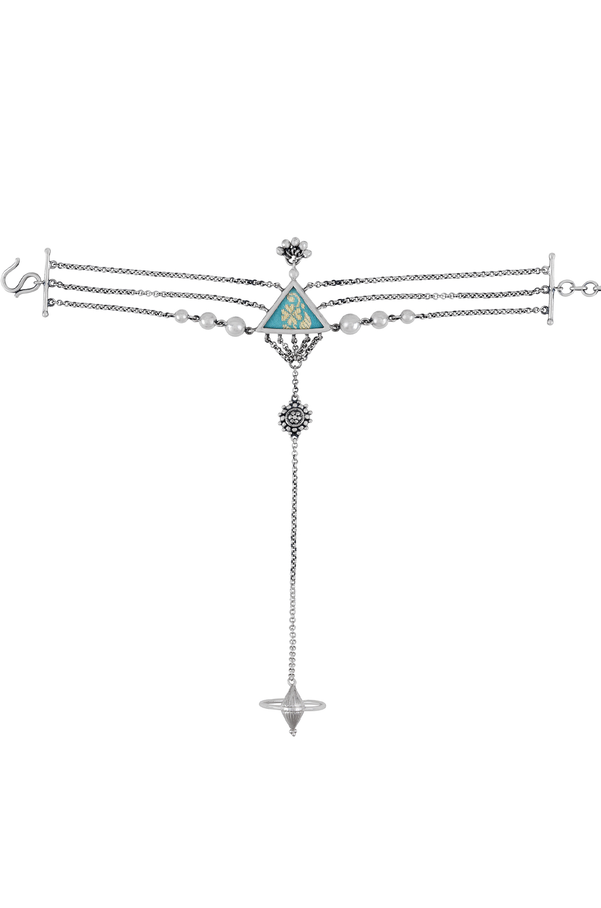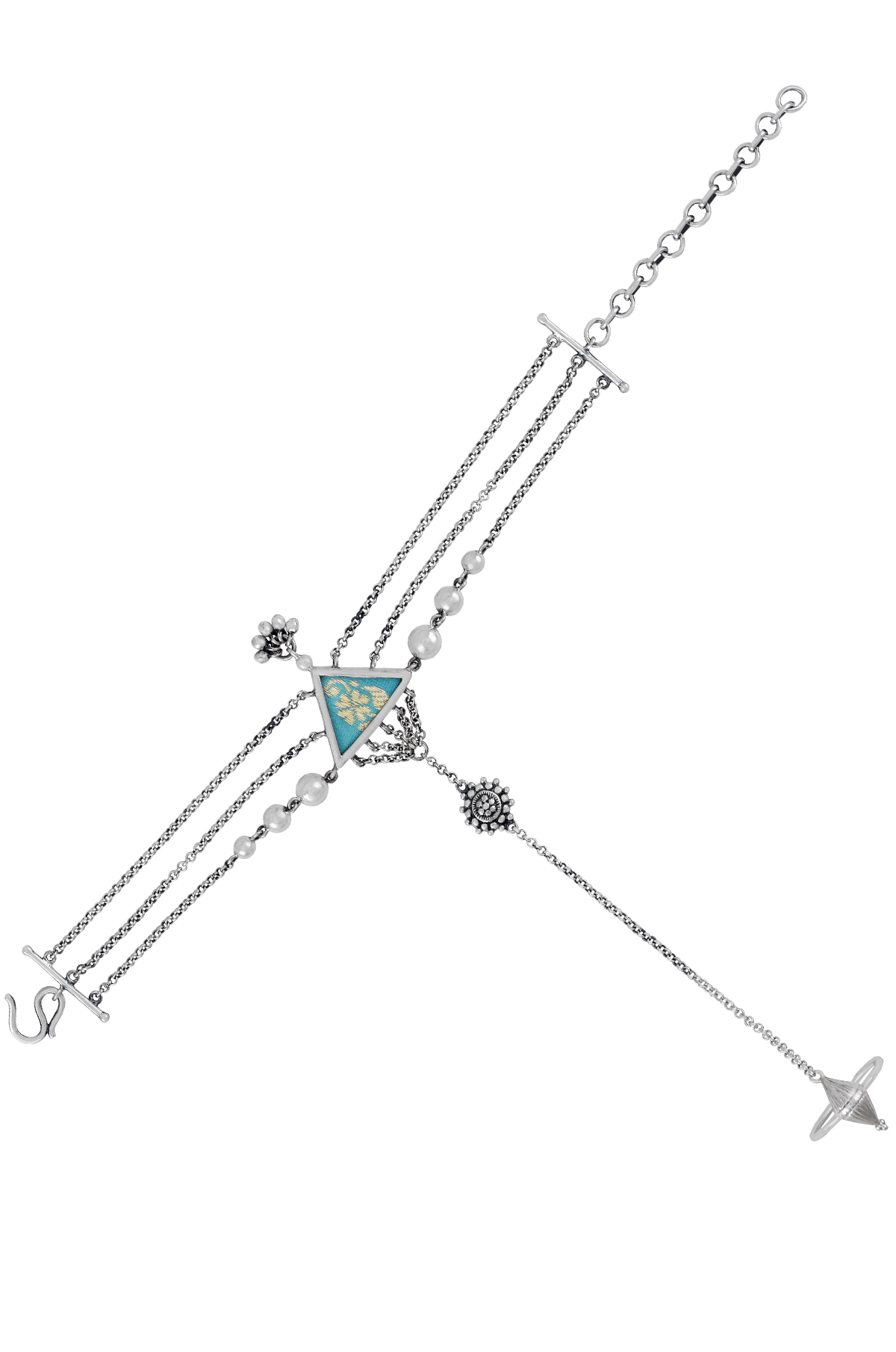 Featuring traditional Banarasi fabric in silver, this layered hathphool will get you in the spotlight in all your festive get-togethers and outings.