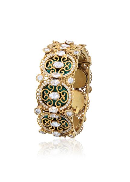 Composition: Gold plated silver with glass. Fastening: Easy hook. All our jewellery is handcrafted and therefore variations may occur.