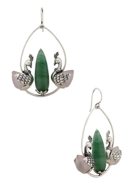These danglers feature a beautiful composition of Birds nest crafted in silver with oxidised finiish, studded with pearls.