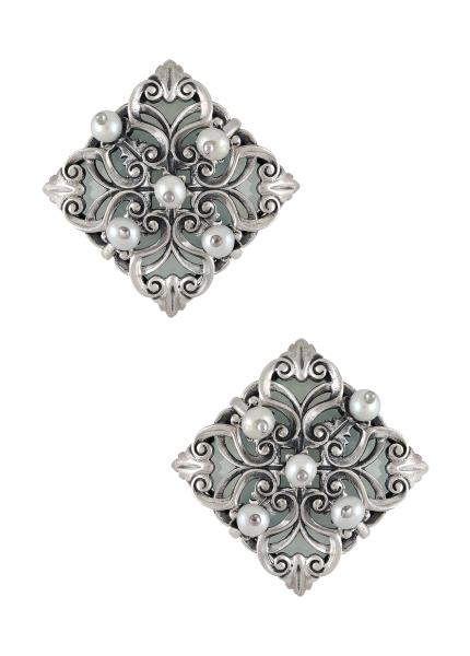 Composition: Oxidised silver with pearls, Fastening: Push back, All our jewellery is handcrafted and therefore variations may occur.