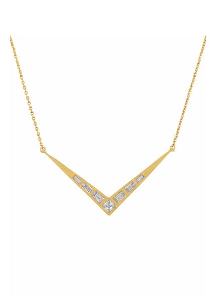 This necklace in a subtle gold look features simple styles with geometric shapes that perfectly complements all your outfits!
