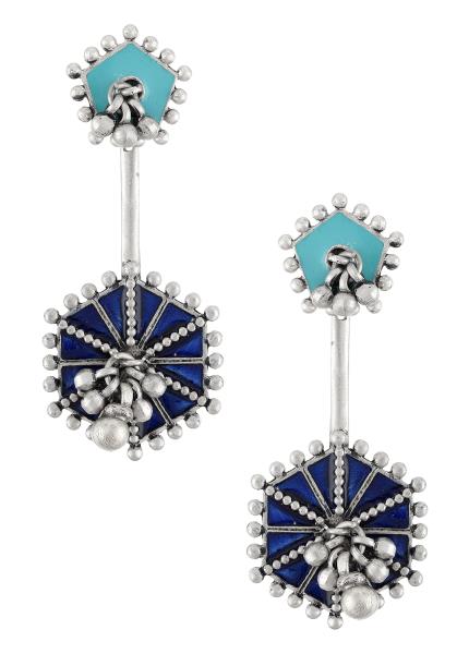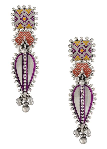 Composition: Oxidised silver with enamel, Fastening: Push back, All our jewellery is handcrafted and therefore variations may occur.
