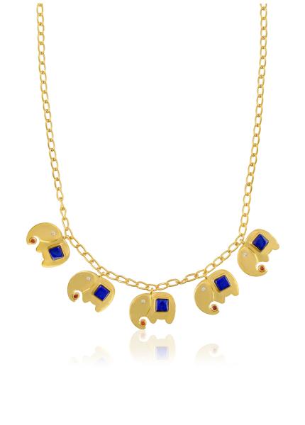 Light hearted charm and rawa droplet anklet made in silver and adorned with elephant motis and multi beads.