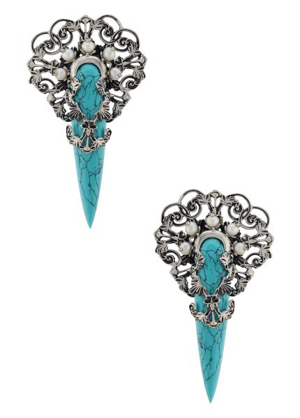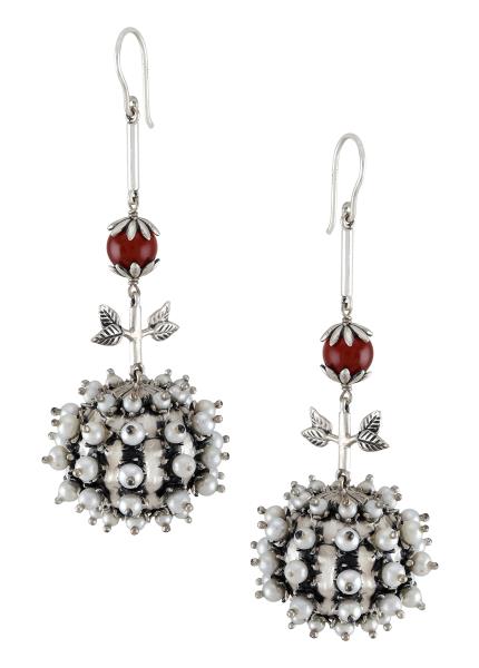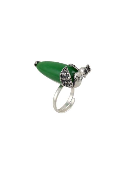 This floral pattern ring is crafted from silver with oxidised finish and studded with pyramid shaped crystal.