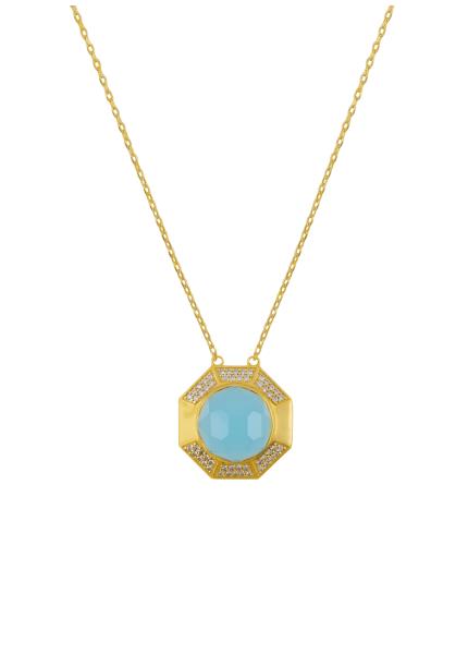 A beautiful blend of ultra-modern aesthetics and classic charm, this resplendent necklace features gold-plated silver adorned with an exotic array of stones.
