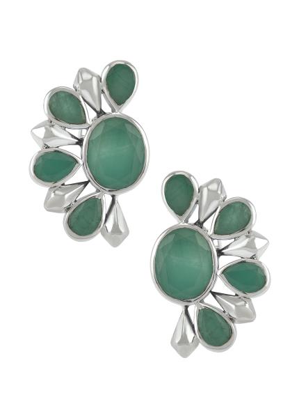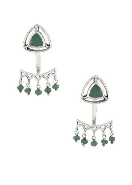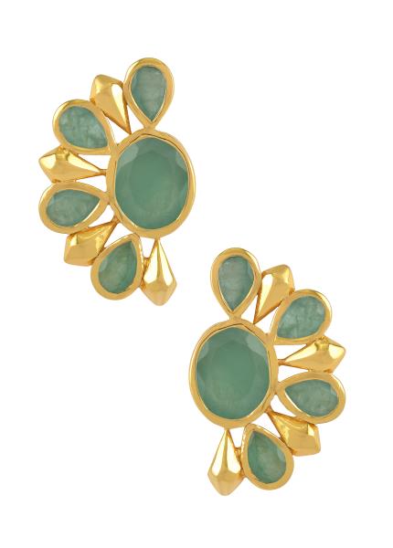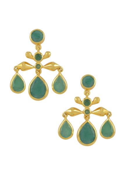 These earrings are handcrafted with gold plated silver and studded with emerald stones.