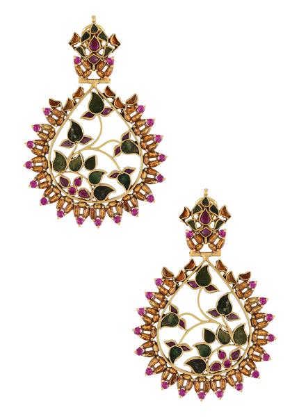 This one-of-a-kind style has intricate floral motifs in gold-plated silver. Lovingly handcrafted with pearls, red and white coloured glass, this is festive jewellery for someone as unique as you!