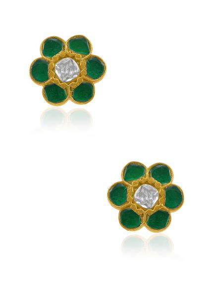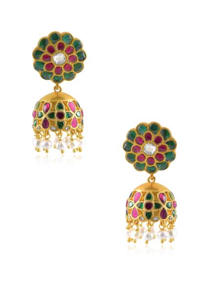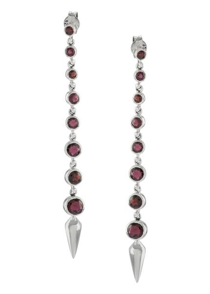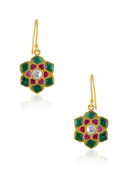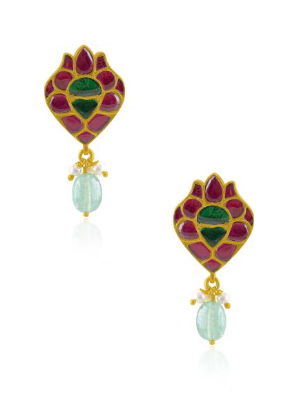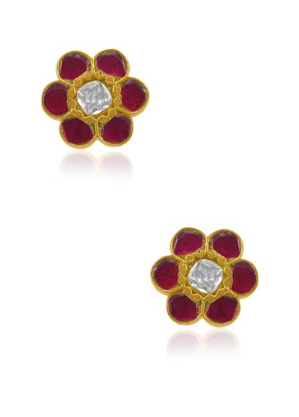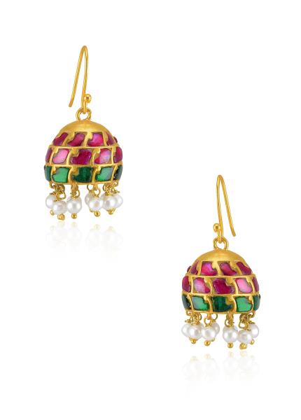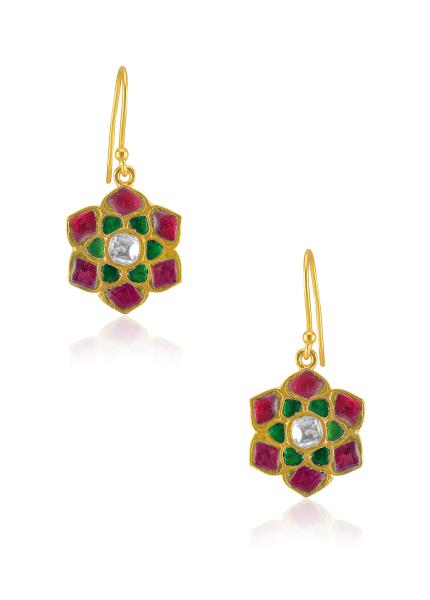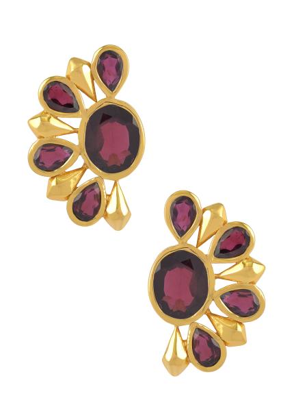 These earrings are handcrafted with gold plated silver and studded with garnet stones.