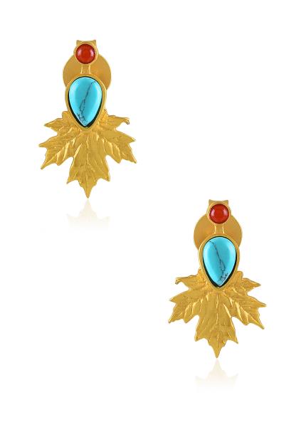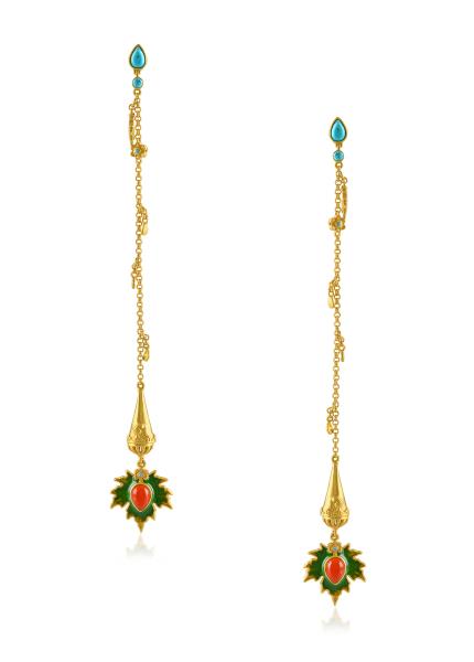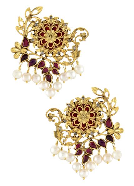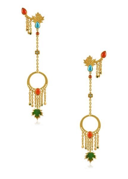 These lotus earrings are handcrafted in gold plated silver and studded with glass.