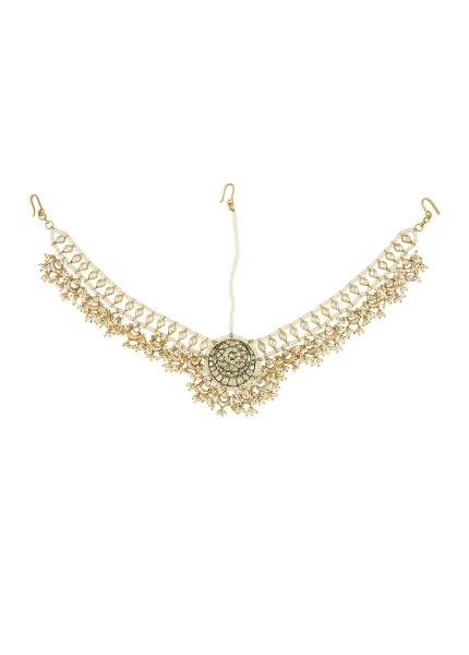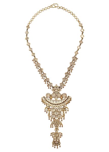 This design is exquisitely handcrafted out of silver with antique gold plating with vintage vibe, perfect for weddings and festivities. Intricately set with fine glass.