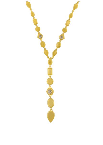 A beautiful blend of ultra-modern aesthetics and classic charm, this resplendent necklace features gold-plated silver adorned with an exotic array of stones.