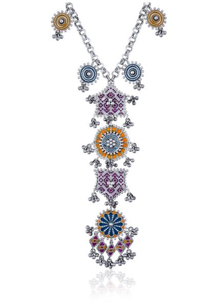 Composition: Oxidized silver with enamel. Fastening: Easy hook. All our jewellery is handcrafted and therefore variations may occur.