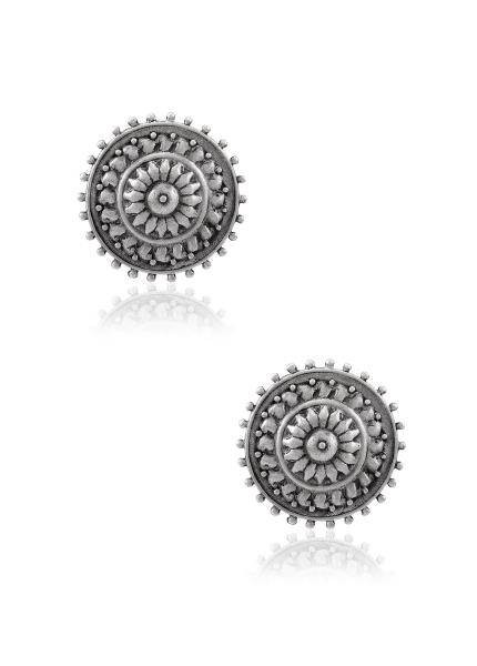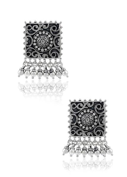 The highlight of these earrings is the intricate motifs in tribal elements and oxidized plating.