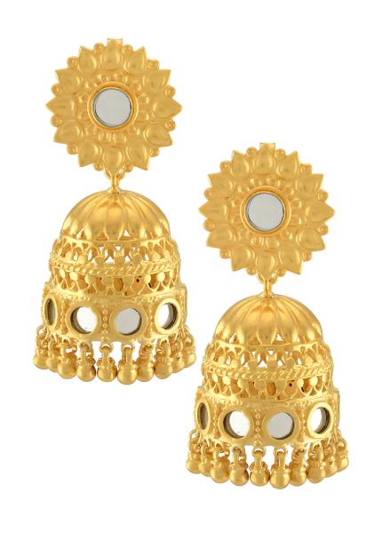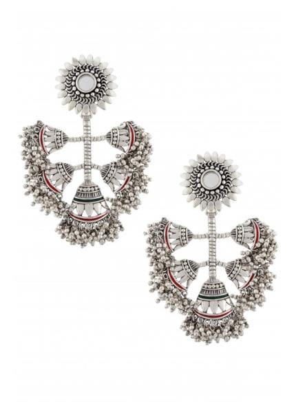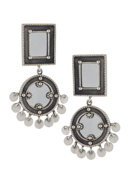 Dainty and adorable silver ear studs adorned with mirror work and geometric designs