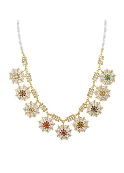 Timeless treasure! Presenting the exquisite fusion of nine gemstones representing the core of Navratna, lovingly handcrafted by our master artisans out of silver with antique gold plating. Each piece is a testament to the essence of Navratna, rich in mystique, epitomizing prosperity and positivity. A priceless addition to your jewel box.